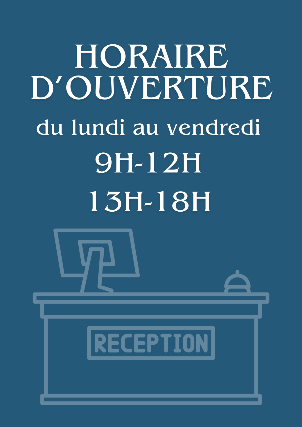 L'accueil est ouvert du lundi au vendredi de 9h à 12h et de 13h à 18h.